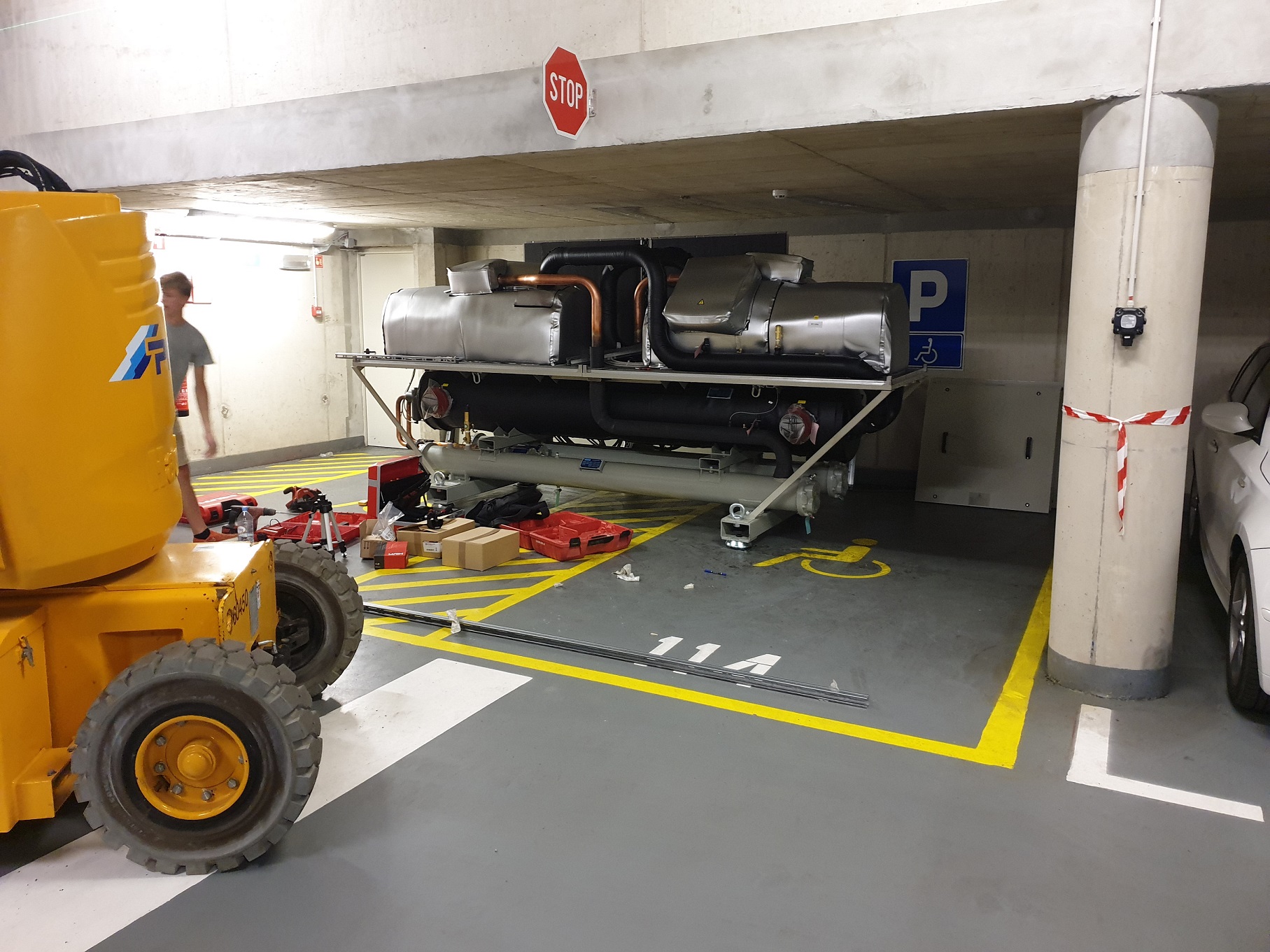 Montaža tehnološke opreme za projekt HPC RIVR v sistemskem prostoru HPC RIVR1 in montaža 500 kW hladilnega agregata.